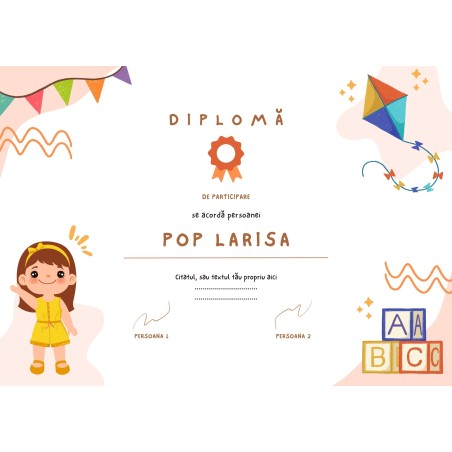 Diplomă personalizabilă cu elemente de artă. Dimensiune: 21x30 (A4), grosime material: 300g/m2.