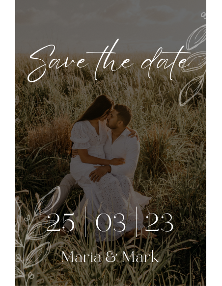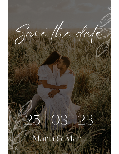 Invitație elegantă Save the Date. Dimensiune: 10x15 cm, grosime material: 240 g/m2.